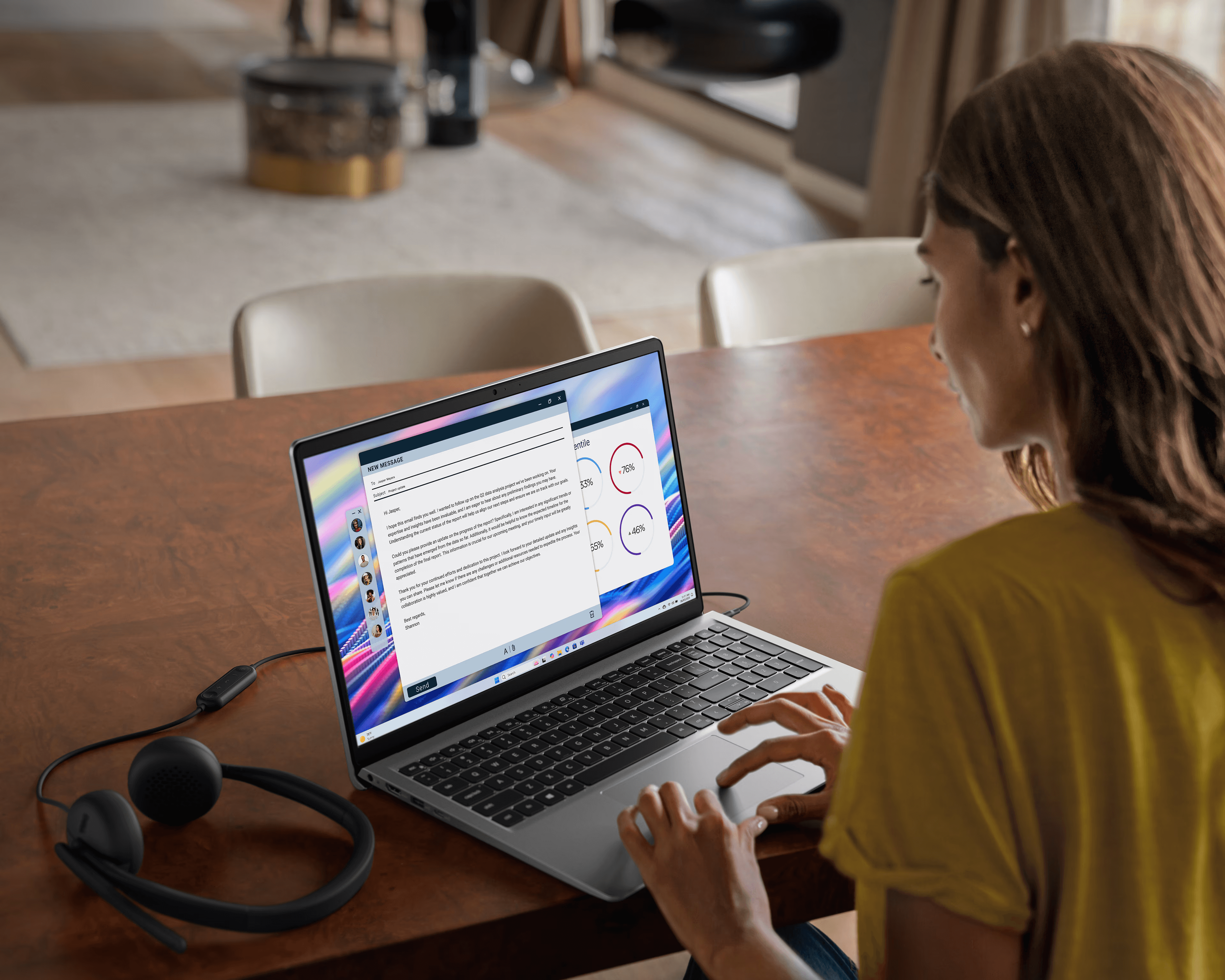 Model ma 15,6-calowy ekran Full HD (1920x1080) z matową powłoką, technologią IPS i 120 Hz odświeżaniem, co przekłada się na wyraźny i komfortowy obraz nawet przy długiej pracy. Dodatkowo ergonomiczna, klawiatura z osobnym blokiem numerycznym zwiększa wygodę korzystania, a technologia Dell ComfortView redukuje emisję niebieskiego światła, dbając o wzrok użytkownika. Adaptacyjne chłodzenie zapewnia wydajną pracę komputera, niezależnie od tego, czy pracujesz przy biurku, czy na kolanach. Dell 15 inteligentnie dostosowuje zasilanie i temperaturę, aby zapewnić płynną pracę.