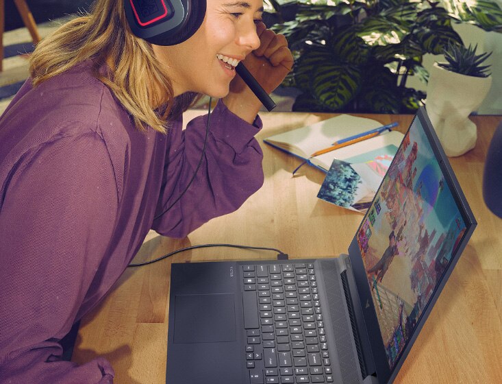 Laptop gamingowy Victus z ekranem o przekątnej 16,1 cala ma wszystko, czego potrzebujesz do grania. W najwyższej konfiguracji jest wyposażony w procesor AMD Ryzen, wydajną kartę graficzną NVIDIA GeForce RTX i nowoczesny układ chłodzenia. Do tego posiada ekran o wysokiej rozdzielczości i krótkim czasie reakcji oraz OMEN Gaming Hub.