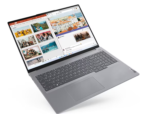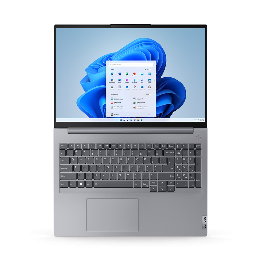 Oprócz eleganckiego wyglądu i stylu aluminiowej obudowy w kolorze Arctic Grey, laptop ThinkBook 16 Gen 6 oferuje ulepszoną, ergonomicznie zaprojektowaną klawiaturę. Klawisze są większe niż w poprzednich generacjach i mają wklęsłą budowę, która jest idealnie dopasowana do palców, a ponadto są wykonane w 50% z plastiku pochodzącego z recyklingu. TouchPad jest znacznie większy niż w poprzednich generacjach, więc nawigacja jest płynna i łatwa w obsłudze. A inteligentny klawisz F9 można dostosować tak, aby otwierał dowolną często używaną aplikację – lub zachował ustawienie domyślne, które prowadzi bezpośrednio do strony z usługami firmy Lenovo.